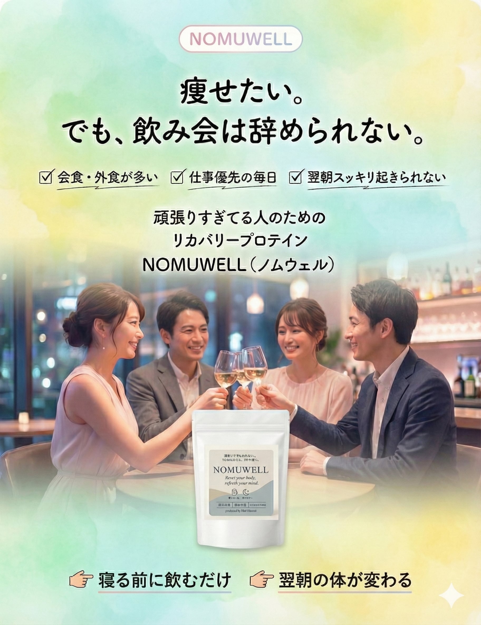 NOMU WELL(ノムウェル)は、寝る前の1杯で翌朝のパフォーマンスを整える“リカバリードリンク”です。