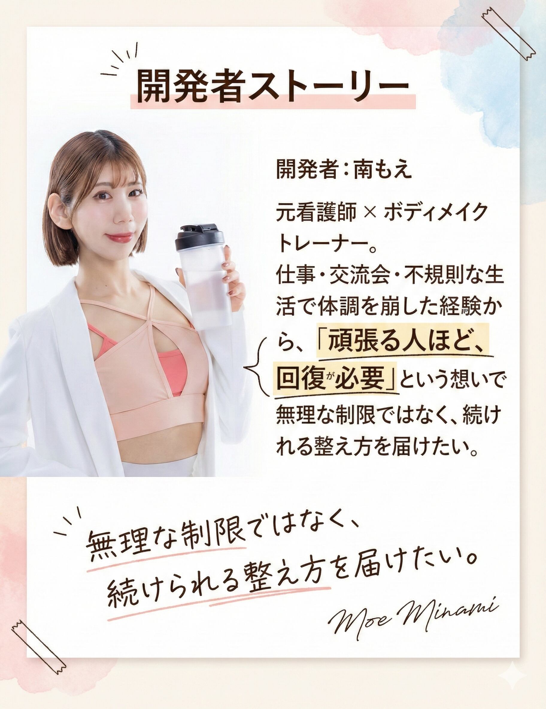 「睡眠の質」「疲労回復」「むくみ」「飲みすぎ後のだるさ」を多角的にサポート。
